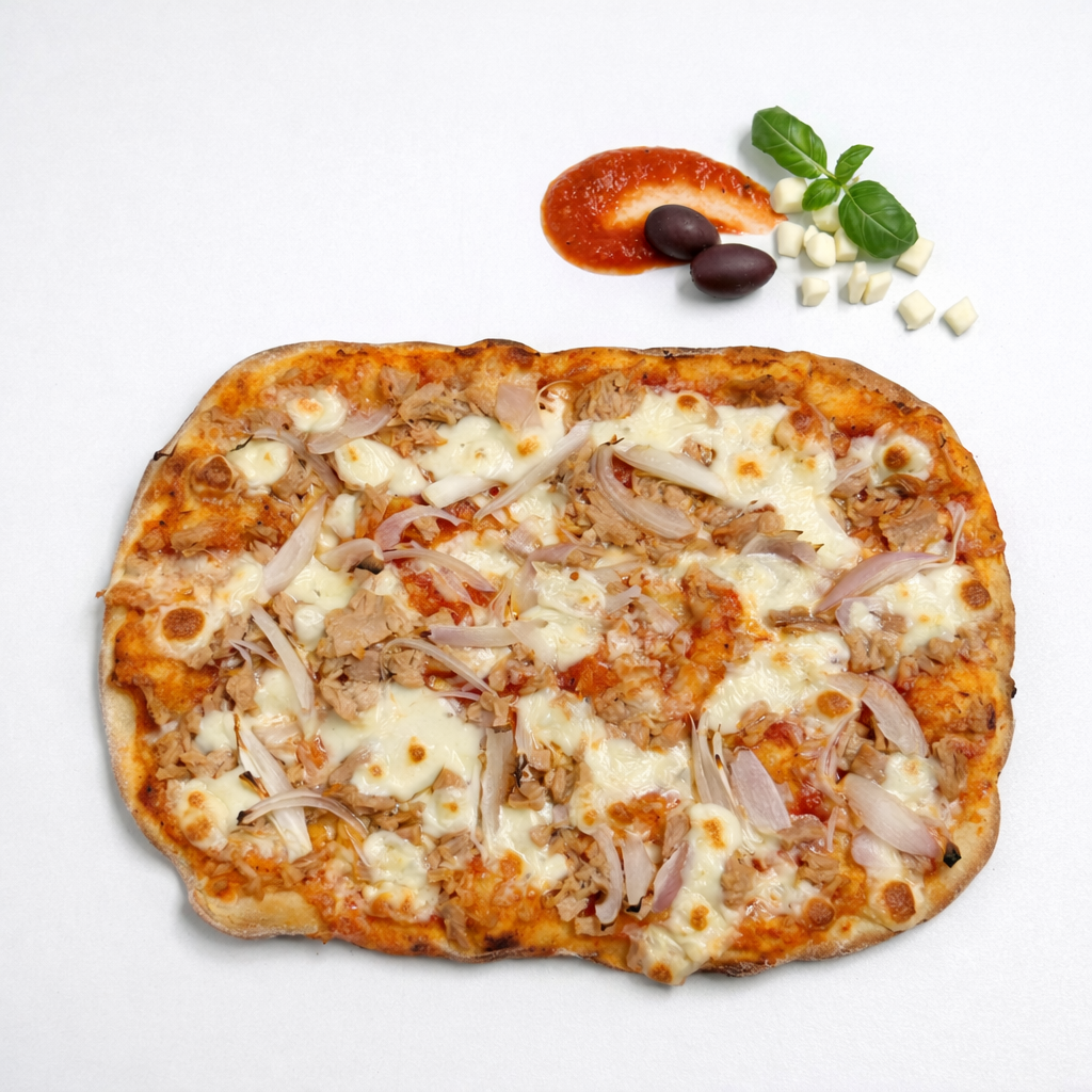 Sos rosii, mozzarella, ton, ceapa, masline